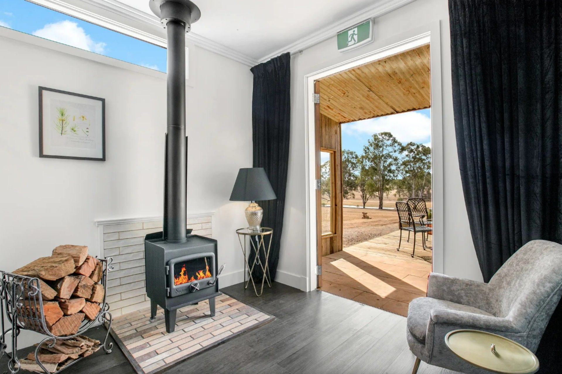 Fireplaces and fire pits operate seasonally—from after the NSW Easter School Holidays until before the NSW September School Holidays, in line with fire regulations. Starter firewood is supplied for 1–2 nights, with additional wood available from the on-site woodshed.